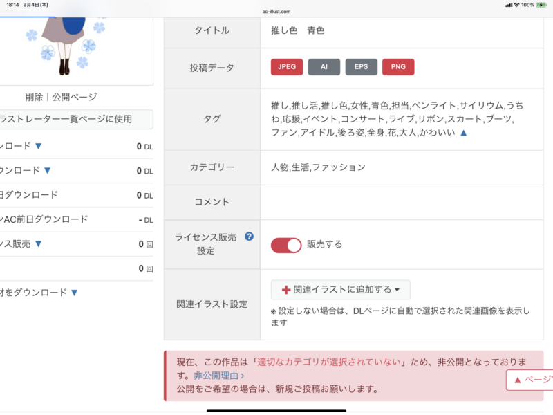9/16まで「推し活」イラストコンテストしていて、審査が早いので毎日のように投稿してます。カテゴリーで引っかかってしまったけど、こちらは再投稿しました。ファッションはカテゴリー違いのようです。
