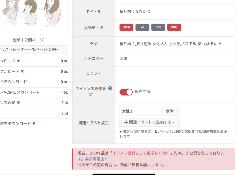 アイコンっぽく仕上げてみたけどだめでしたか。「その他の理由」なので公開するのに相応しくないイラストだそうです。