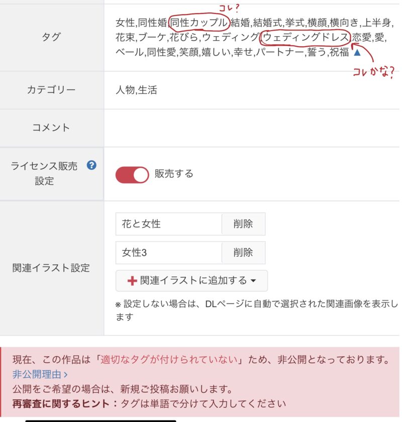 タグは単語でって前にもあったのに、いけるかな?っとちらっと思っちゃってそのまま投稿してダメだったという。